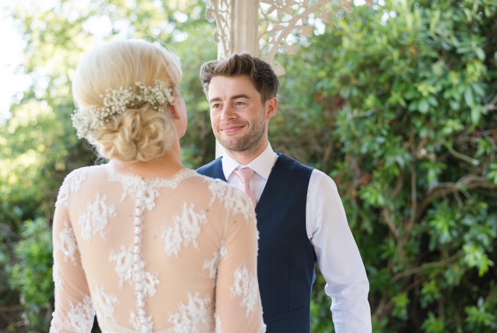 Natasha looked so beautiful and elegant with her blonde tresses swept into an up do. Her makeup was perfect and really made her gorgeous brown eyes ‘pop’. She absolutely wowed in a lace frock by Suzanne Neville, and her choice of classic pastel roses for her bouquet and wedding flowers were fragrant, summery and very pretty.